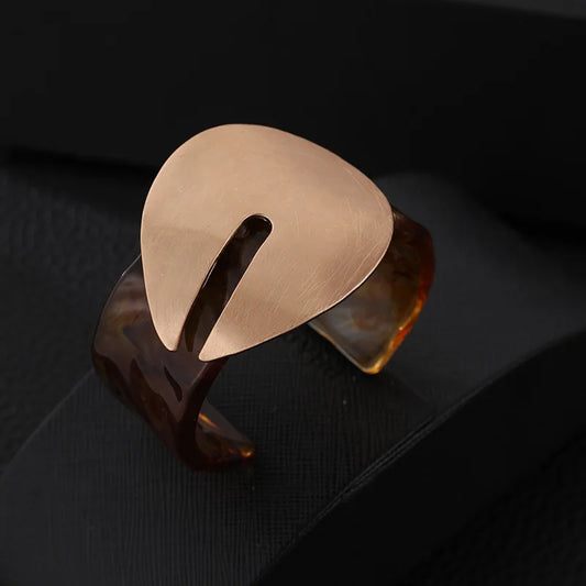 Mira's Geometric, Trendy, Stylish, Chunky, Resin, Golden/Silver, Open, Cuff Bracelet