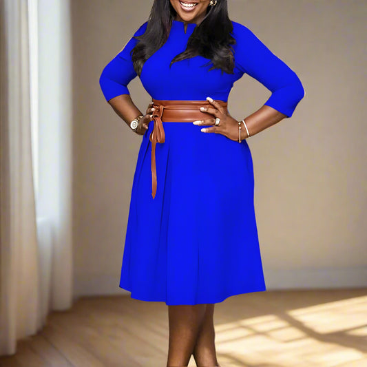 Amira's Solid Color, Elegant, Trendy, Stylish, Vintage, Temperament, Long Sleeves, Office Dress