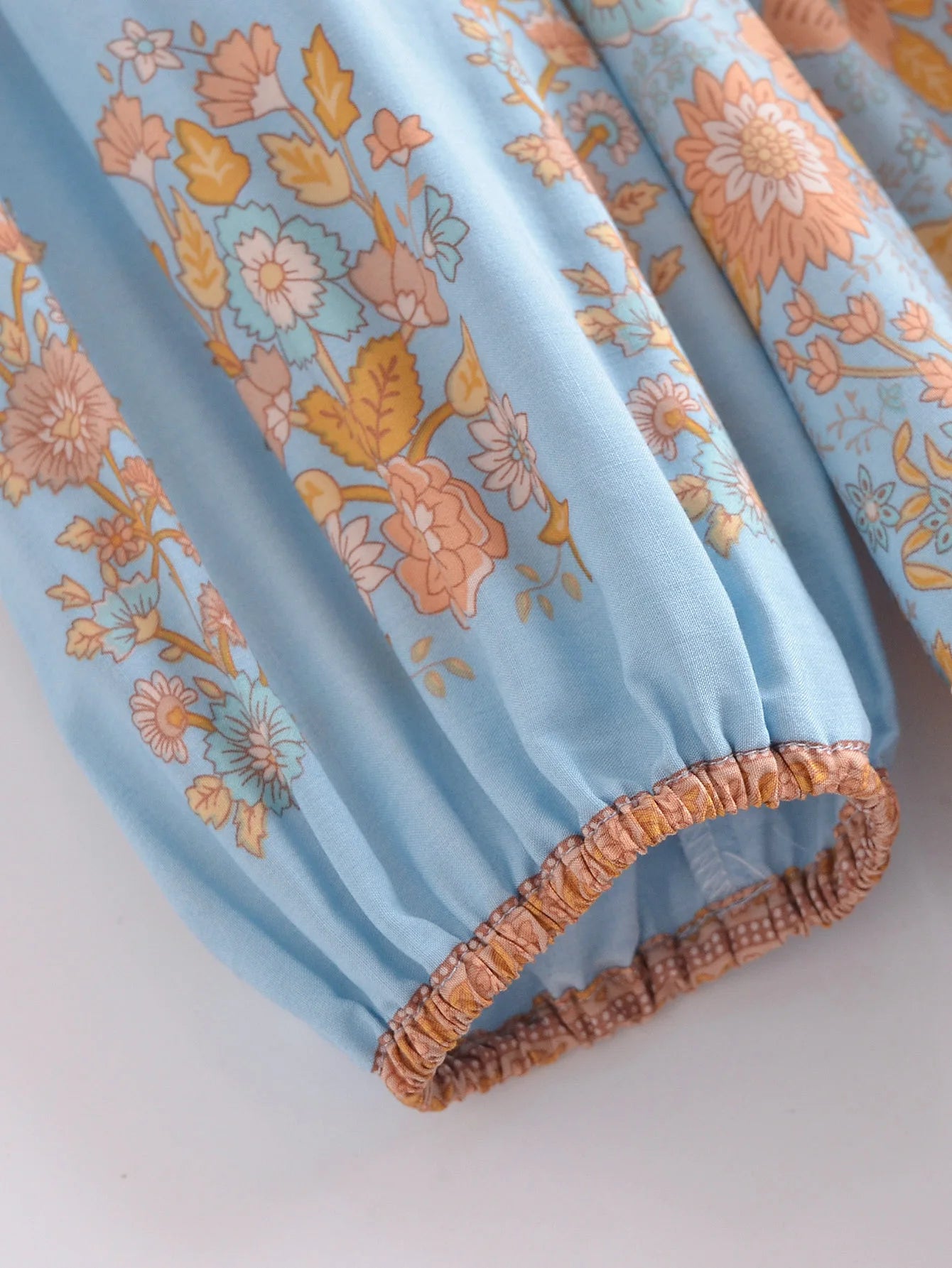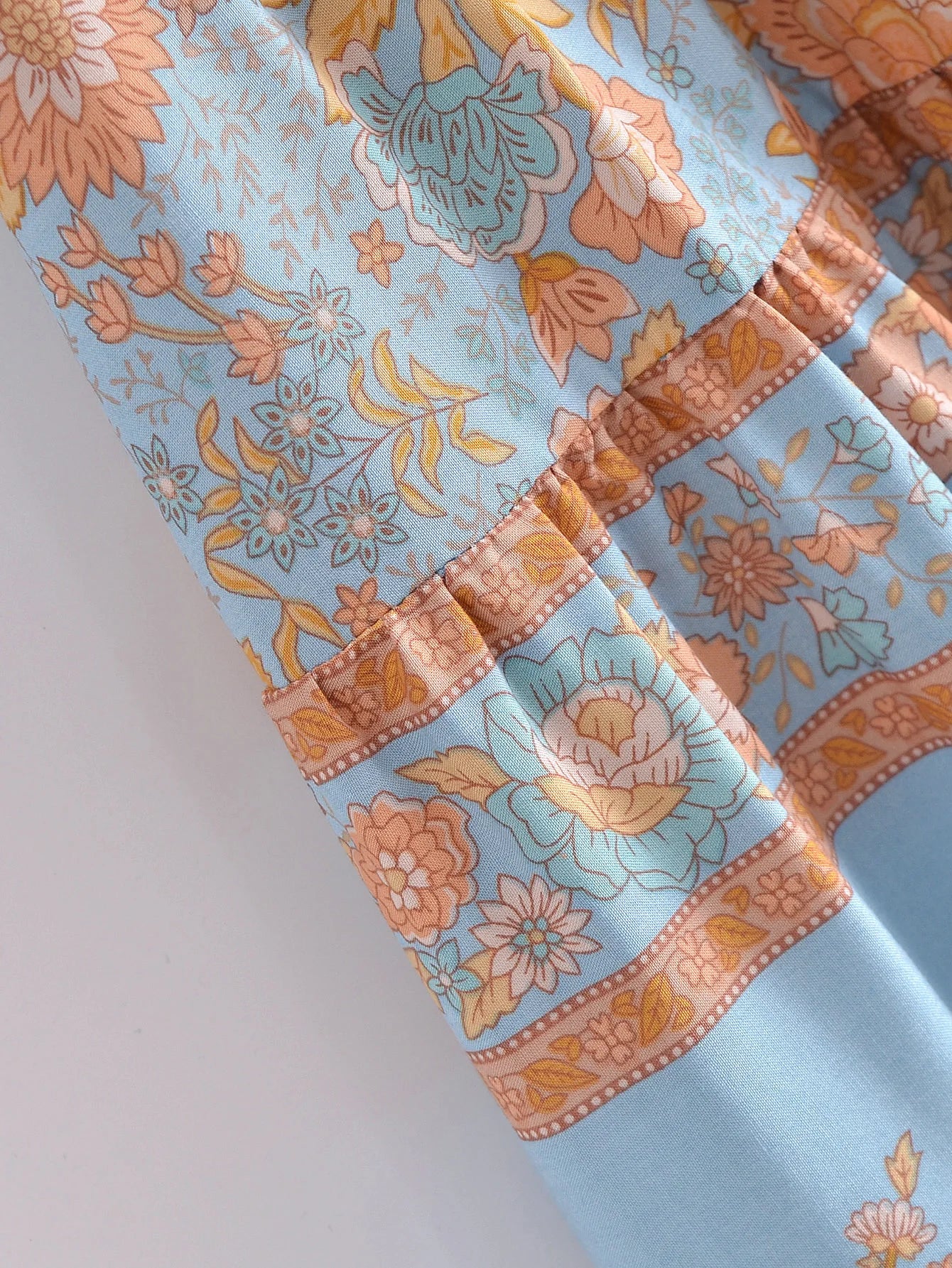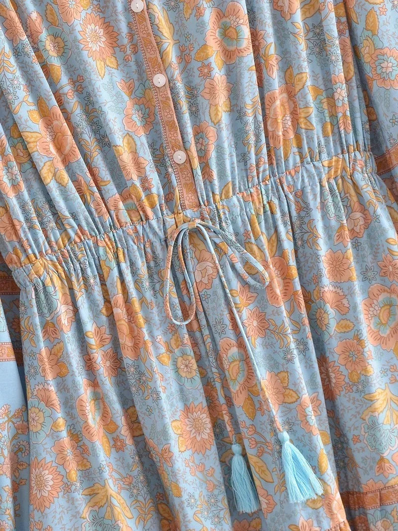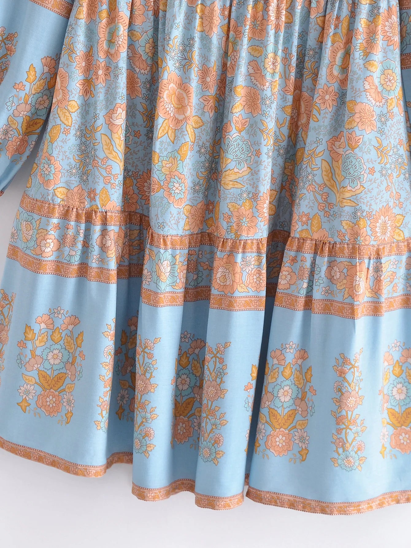 Camelia’s Hippie, Vintage, Stylish, Trendy, Loose, Floral, Ruffles, Long Sleeves, Print, Floral, Bohemian, Mini Dress