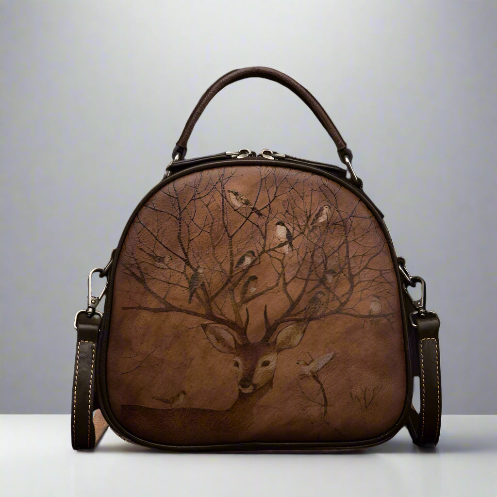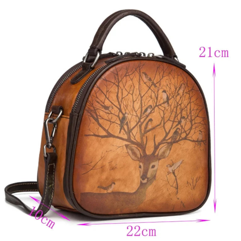 Bianca's Genuine Leather, Retro, Vintage, Stylish, Trendy, Deer Pattern, Handbag, Shoulder Bag