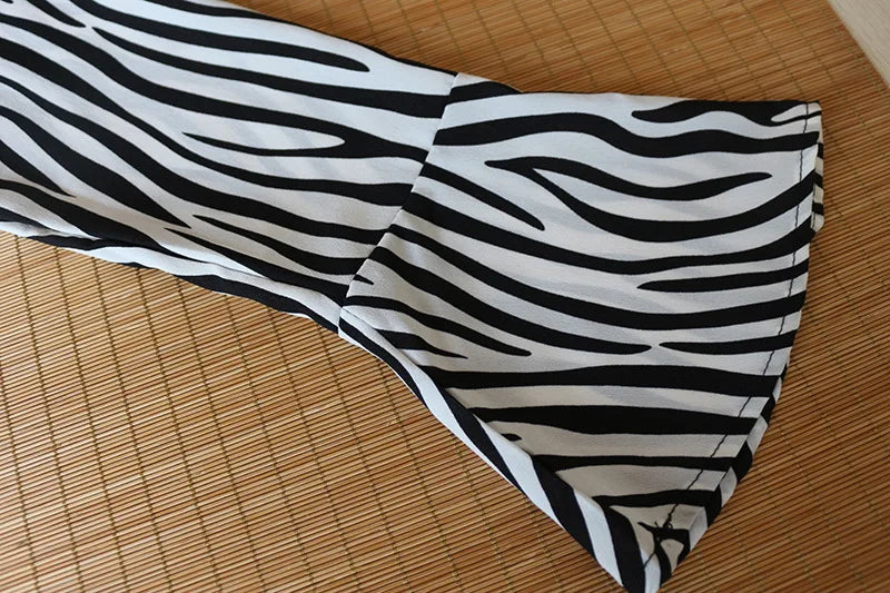Zoe's Elegant, Zebra Print, Long Petal Sleeves, Trendy, Elegant, Stylish, Ruffles, Cross Pullover, Midi Dress