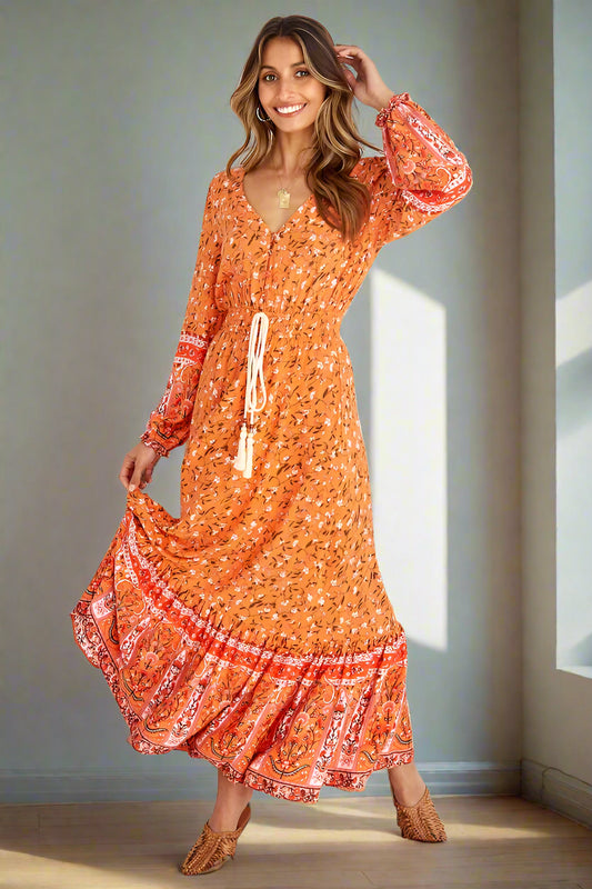 Rosa's Boho, Long Sleeves, Trendy, Stylish, Vintage, Viscose, Long sleeves,Long Dress