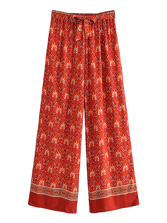 Karman's Wide Leg, Printed, Boho, Palazzo, Stylish, Trendy, Elastic Waist, Sashes,Bohemian Pants