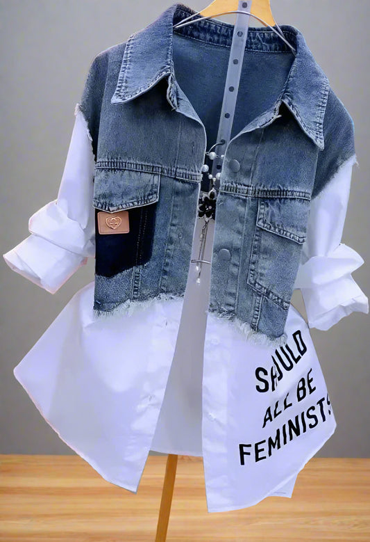 Julie's Casula, Elegant, Stylish, Trendy, Wide Leg, Long Jacket, Denim Outfit sets