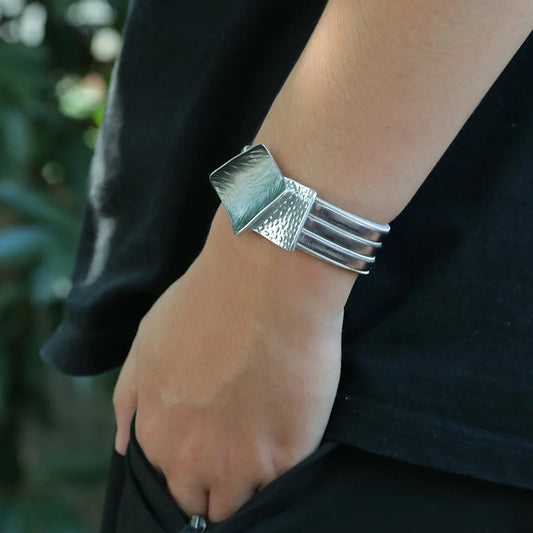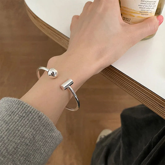 Gigi's 925 Silver, Strip Ball, Unisex, Vintage,Trendy, Stylish, Handmade, Open Bracelet