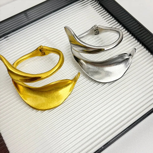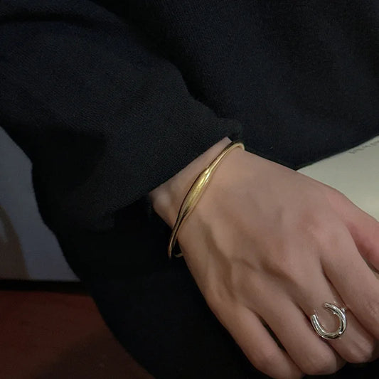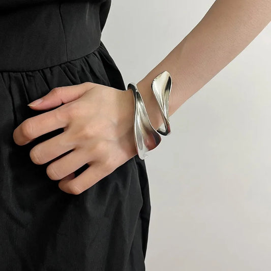 Zoe's Irregular, Trendy, Stylish, Minimalist, Golden/Silver, Wavy Shaped, Open Bracelet
