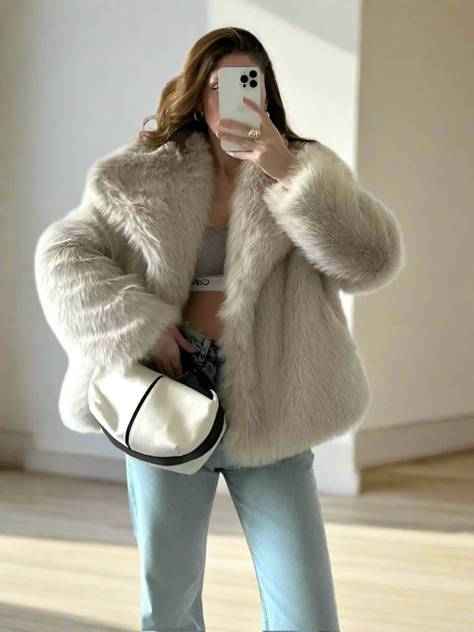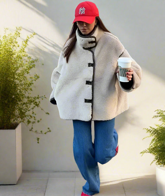Elina's Sequin, Winter, Trendy, Stylish, Fur, Woven, Cotton, Oversize, Short Jacket