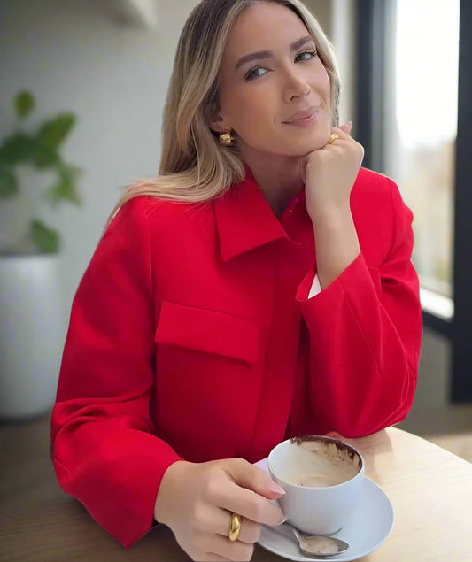 Julia's Cropped Long Sleeved, Trendy, Stylish, Casual, Elegant, Red Blazer/Jacket