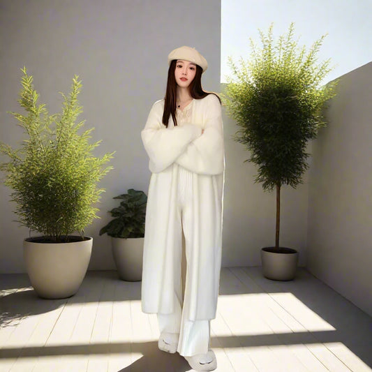 Maria's Trendy, Stylish, Vintage, Mink Fleece, Knitted, Long Sleeves, Loose, Long Cardigan