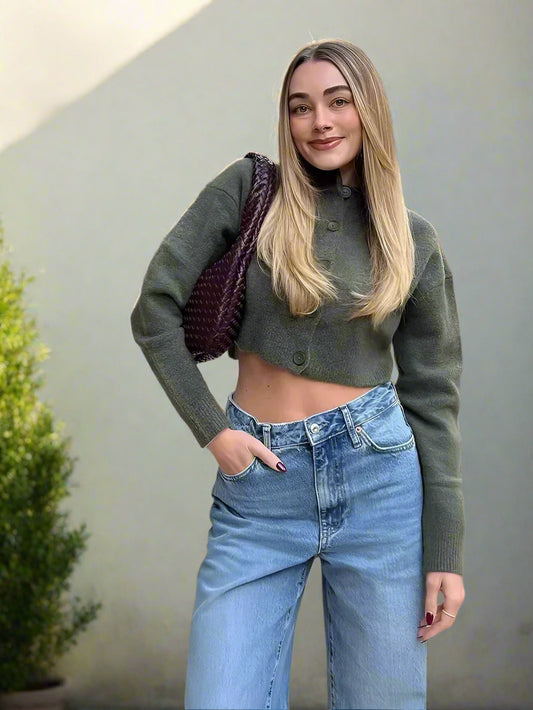 Hale's Cropped, knitted, Trendy, Stylish, Long Sleeves, Single breasted, Winter/Fall Cardigan