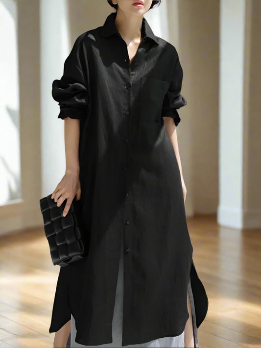 Hellen's Loose, Trendy, Stylish, Long Sleeves, Single Breasted, Casual, Shirt Long Dress
