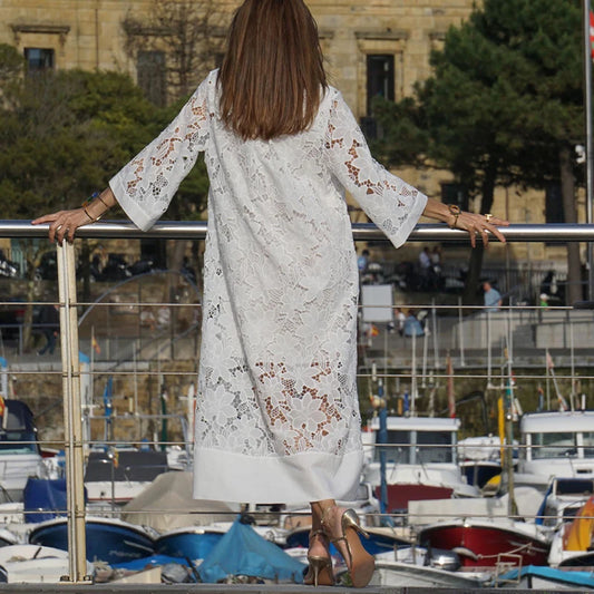 Linda's White Lace, Trendy, Stylish, Elegant, 3/4 Sleeves, Coverup, Loose, Long Dress