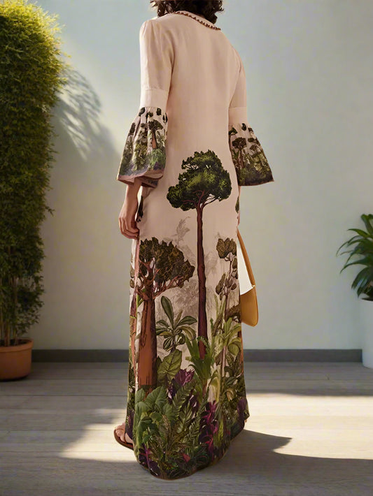 Hind's Boho style, Floral Printed, Flare Sleeves, Trendy, Stylish, Vintage, Long/Maxi Dress
