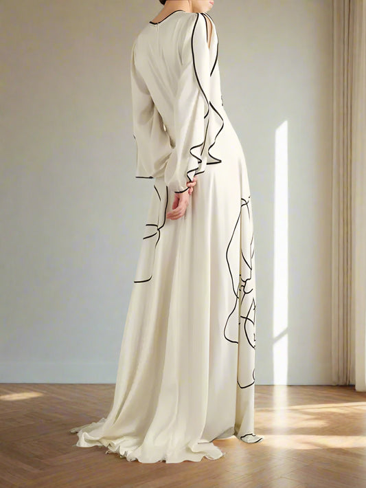 Yara's English Style, Trendy, Floral, Printed, Stylish, Elegant, Long Sleeves, Evening Dress