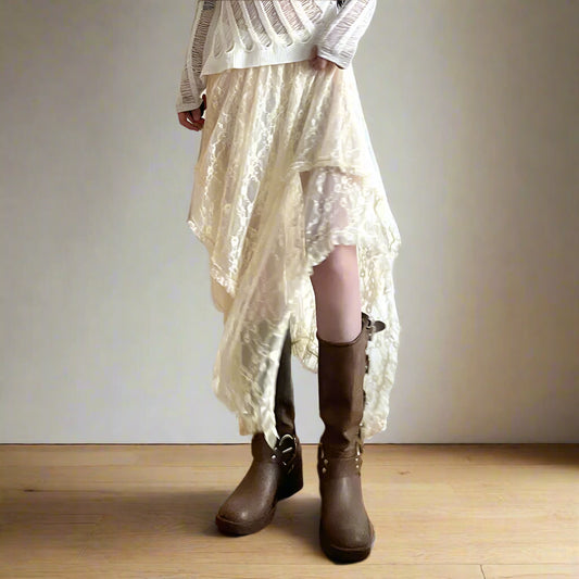 Ariana's Lace, Asymmetric, Elastic Waist, Boho, Vintage, Trendy, Stylish, One size Skirt