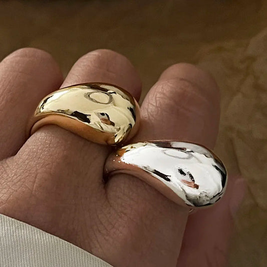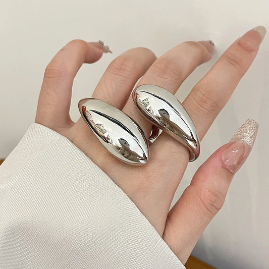 Camila's 925 Sterling Silver, Minimalist, Trendy, Stylish, Simple Golden/Silver, Oval, Adjustable Rings