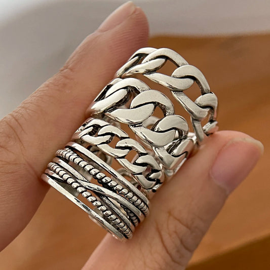 Noha's Exaggerated, Trendy, Stylish, Chunk, Punk, Golden/Silver, Double Ring
