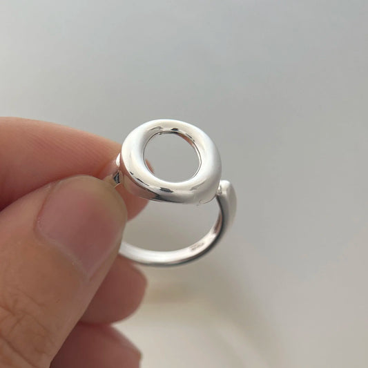 Luliya's 925 Sterling Silver, Couple, Minimalist, Handmade, Circle, Hollow, Adjustable Rings