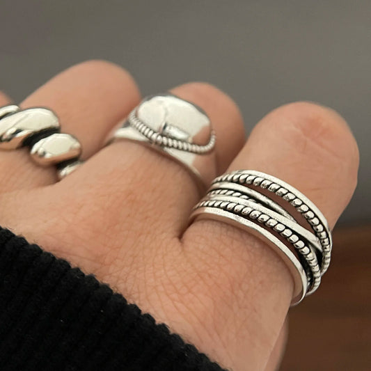 Monica's 925 Sterling Silver, Couple, Minimalist, Handmade, Trendy, Shinny, Adjustable Ring