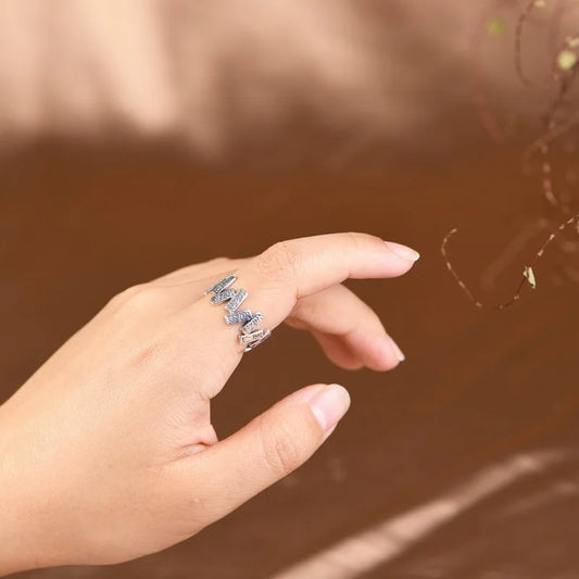 Cleo's 925 Sterling Silver, Blue Zircons, Vintage, Trendy, Irregular, Adjustable, Couples Rings
