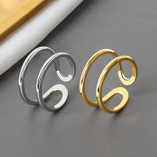 Sally's 925 Sterling Silver, Open, Golden, Minimalist, Irregular, Trendy, Adjustable Rings