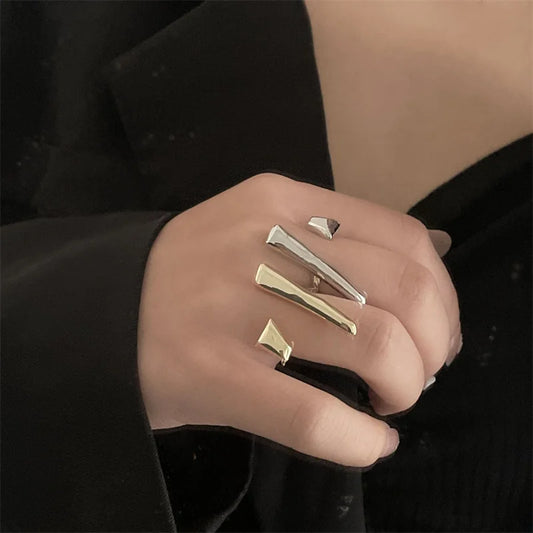Iris's Fashionable, Trendy, Stylish, Golden/Silver, Geometric, Irregular, Adjustable Ring