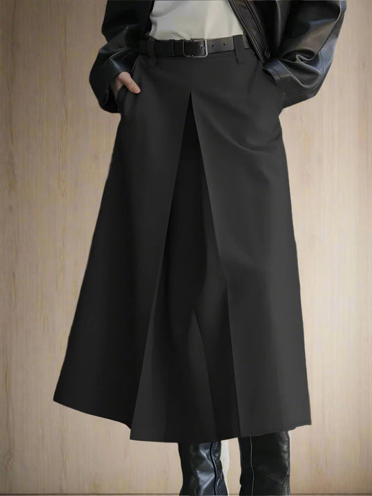 Maria's Elegant, Trendy, Stylish, Casual, Maxi, Solid Color, High Waist, Pockets, A-Line Skirts