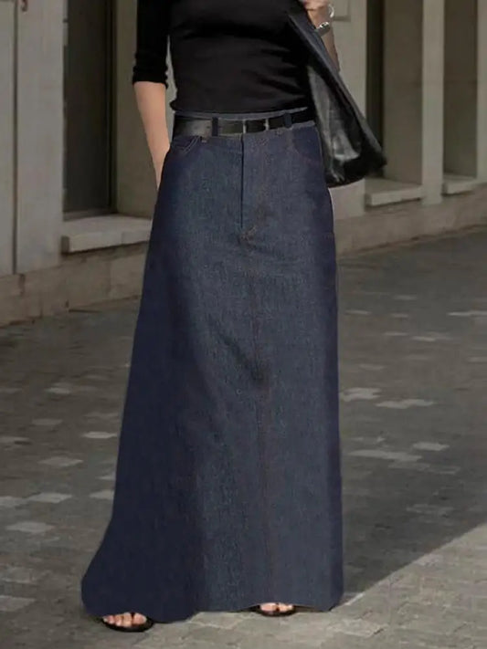 Ariana'a Maxi Denim Cotton -High Waist Skirt with Pockets