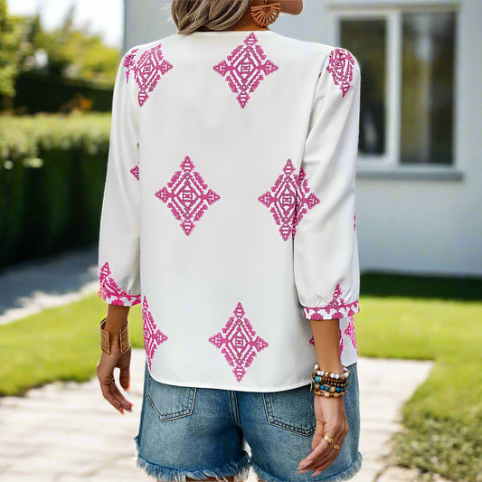 Emmy's Loose, Casual, Trendy, Stylish, Boho, Pullover, Long Sleeves, Printed Blouse