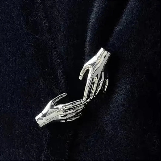 Yara's Metal, Smooth, Trendy, Stylish, Palm Hand, Large, Silver/Gold, Brooch