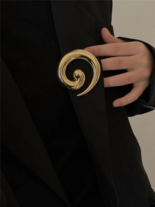 Nancy's Vintage, Trendy, Stylish, Gold-plated, Irregular, Metal, Spiral Brooch