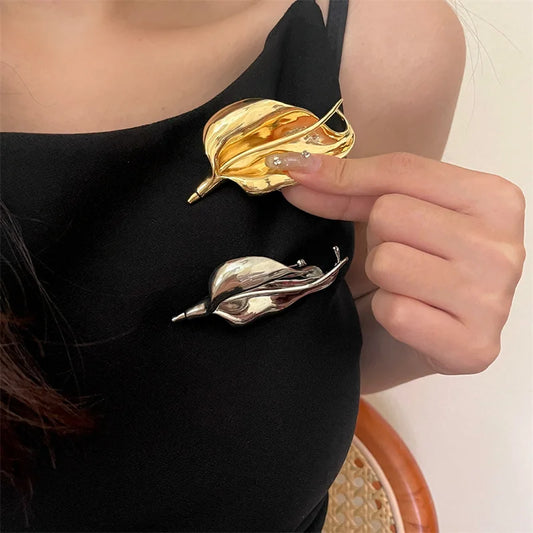Zizi's Metal Leaf, Trend, Stylish, Vintage, Golden, Silver, Pin Brooch