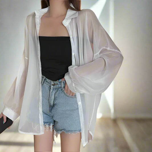 Lina's Chiffon, See-through, Sun-proofed, Loose, Trendy, Stylish, Long sleeves, Multicolors Blouse