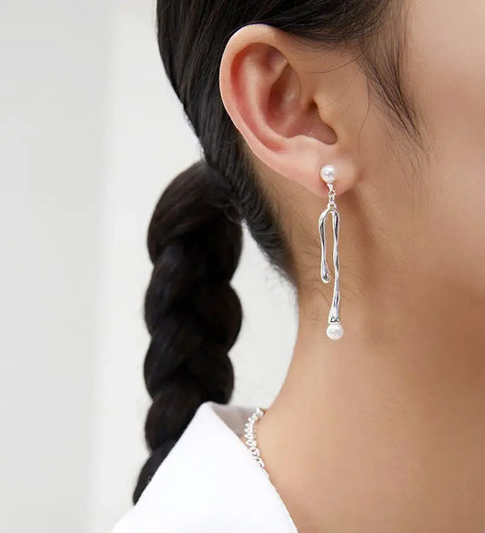 Lucy's 925 Sterling Silver, Vintage, Water Shape, Trendy, Stylish, Irregular, Stud Earring