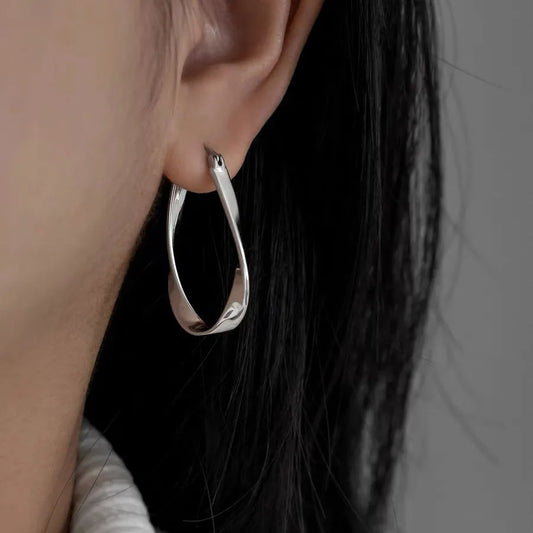 Zein's 925 Sterling Silver, Trendy, Stylish, Vintage, Simple, Oval Twist, Hooped Earrings