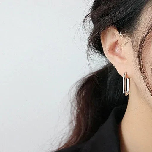 Yousra's 925 Sterling Silver ,Trendy, Stylish, Minimalist, Retro, Rectangle, Hooped Earring