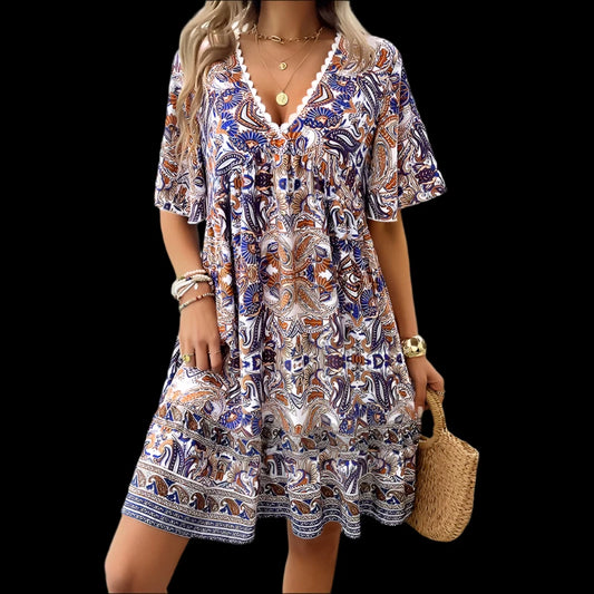Julie's Boho Loose - short sleeves Above Knee Dress