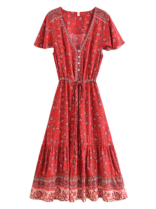 Dina's Vintage, Boho, Stylish, Trendy, Rayon, Floral, Printed, Long, Bohemian Dress