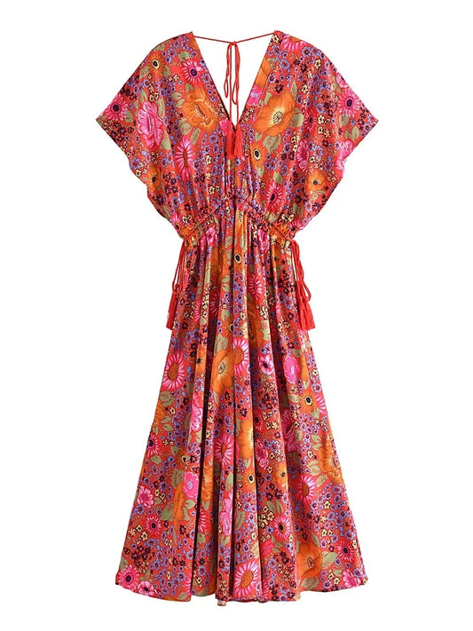 Alice's Vintage, Floral, Print, Batwing sleeves, stylish, Trendy, Boho, Maxi Bohemian Dress