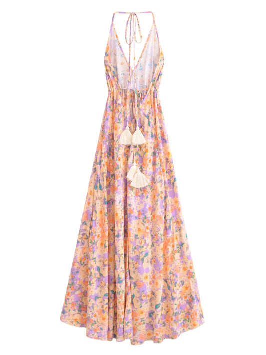 Mila's Floral, Backless, Beach, Party, Boho, Holiday, High-Low, Maxi Dress