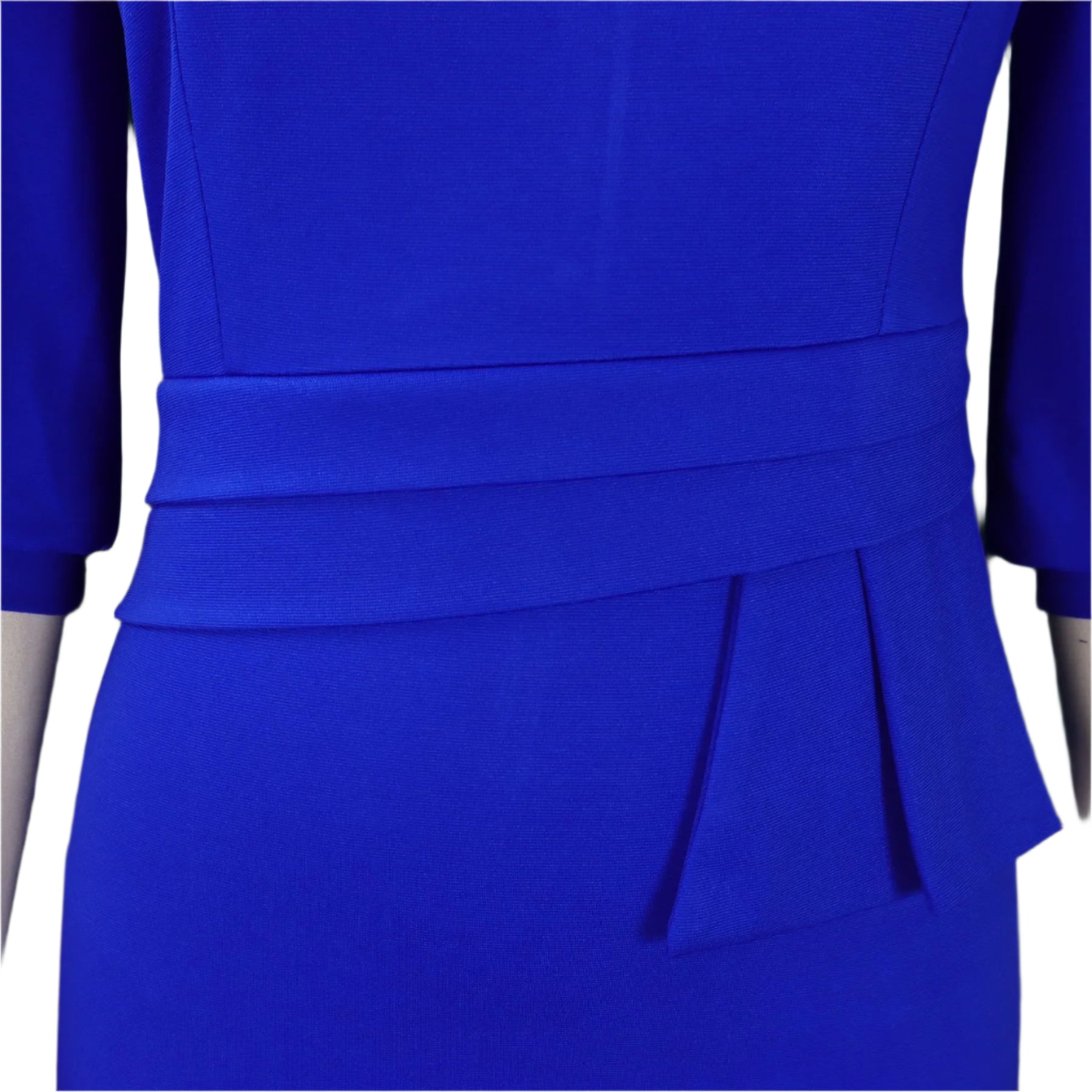 Huda's Sheath, Solid Color, Trendy, Stylish, Vintage, Midi, 3/4 Sleeves, Fit, Office Dress
