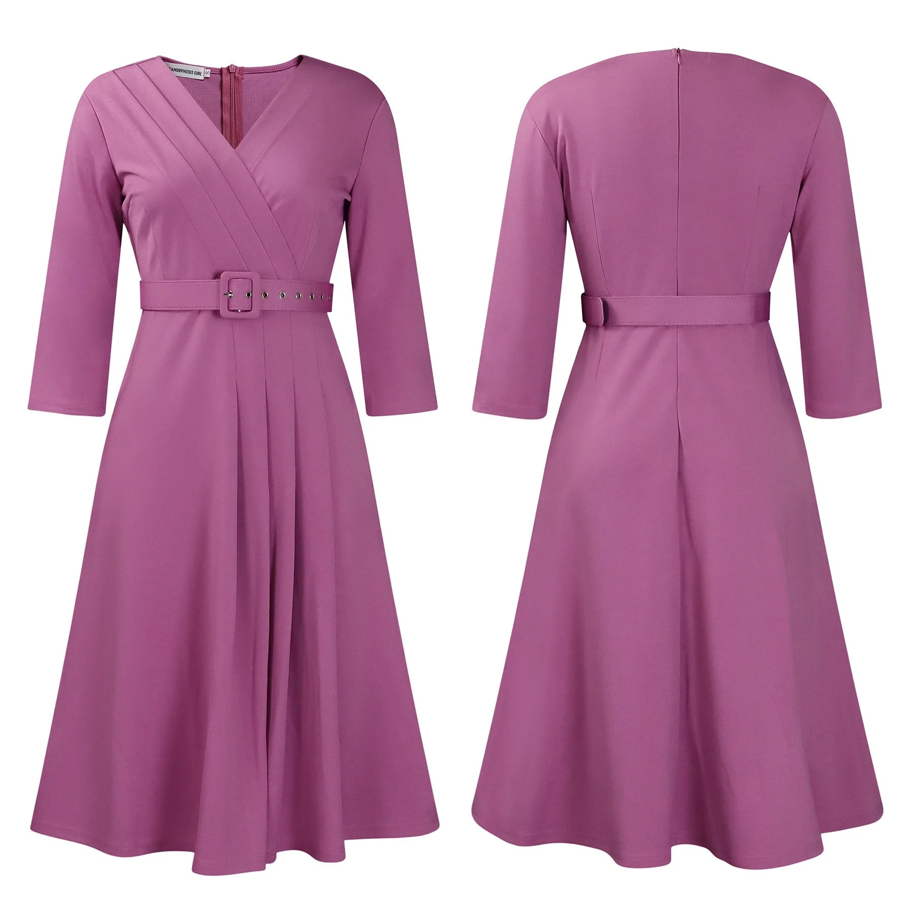 Samantha's Pleated, Trendy, Stylish, Formal, Office style, Sleeves, Midi Dress