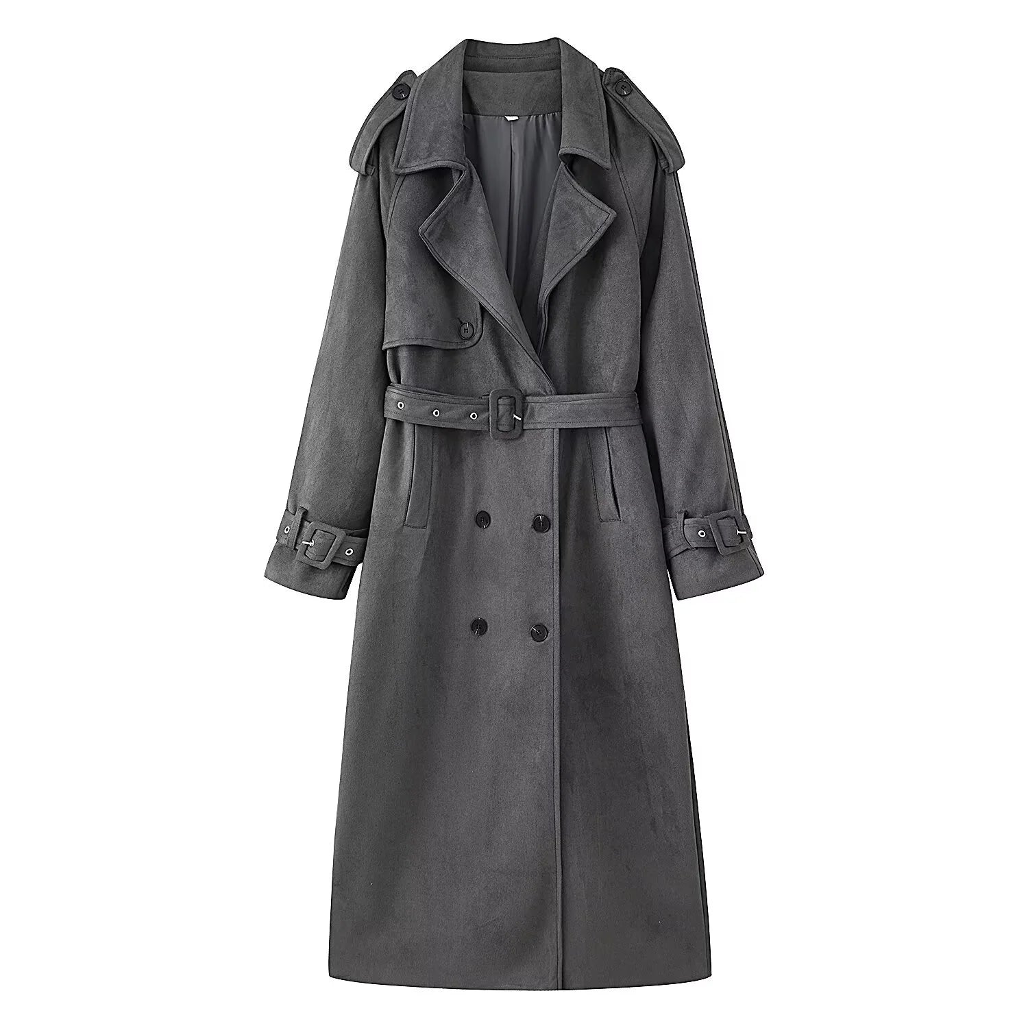 Sally's Solid, Suede, Winter, Double Breasted Stylish, Chic, Trendy, Long, Trench Coat